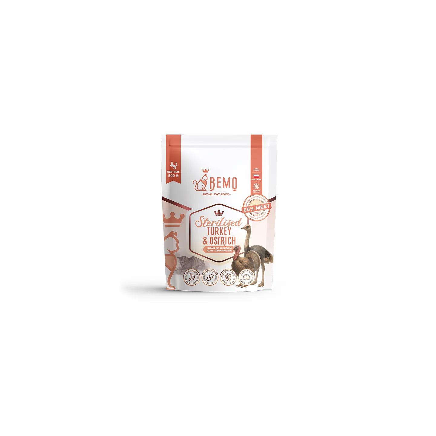 Bemo suha mačja hrana puran in noj (Turkey with Ostrich)